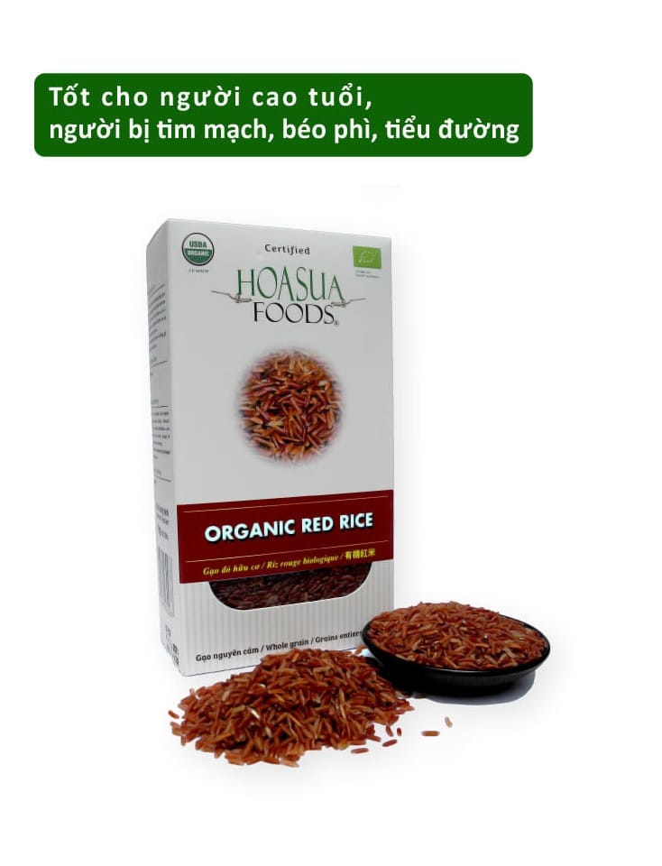 Gạo đỏ hữu cơ HOASUAFOODS có giá trị dinh dưỡng cao và là nguồn đạm thực vật tốt : Có hàm lượng đạm từ 10% đến 12%, với 16 loại Axít amino, riêng lysine gấp 3-4 lần gạo thông thường, arginine gấp 2 lần gao thông thường. Các dưỡng chất khác trong Gạo đỏ hữu cơ HOASUAFOODS như vitamin B1, B2, phosphor, sắt, kẽm, selenium, và các khoáng chất khác cũng cao hơn gạo thường. Đã được cấp giấy chứng nhận thực phẩm hữu cơ của Mỹ Và Châu Âu bởi tổ chức Control Union của Hà Lan. Cũng như các dịch vụ đi kèm với phương châm bảo vệ sức khỏe người tiêu dùng cũng như góp phần xây dựng một môi trường xanh.
